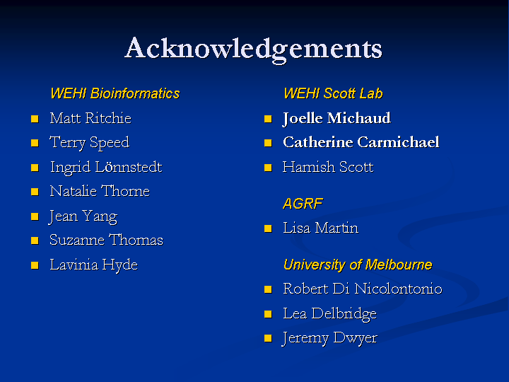WEHI Genetics and Bioinformatics Division 8 October 2002, Melbourne